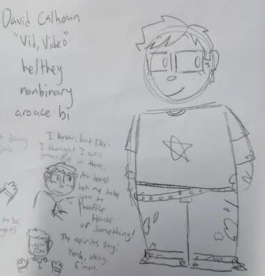 (my psych self insert! david (who prefers video) works as psych's "secretary/intern/guy who does stuff when we need them". he's also in a queerplatonic polycule with shawn and gus. he has a strong dislike for cops and mostly stays in the psych office, but they hate shawn's dad even more.)